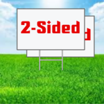 Our corrugated PVC yard signs are 24" Wide by 18" Tall and complete with your design printed on one or both sides. Metal ground stakes are included at no additional cost.